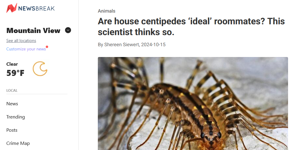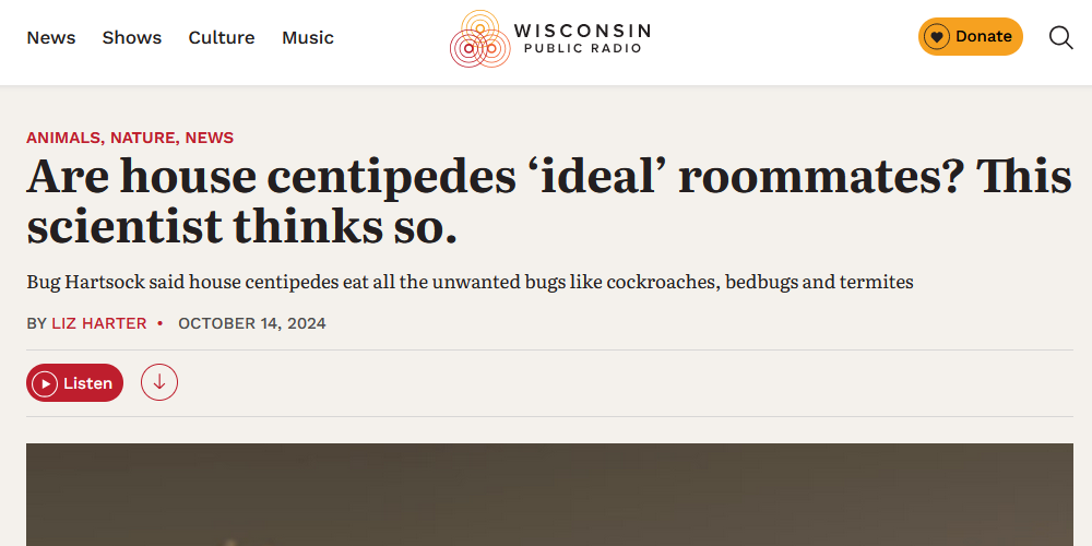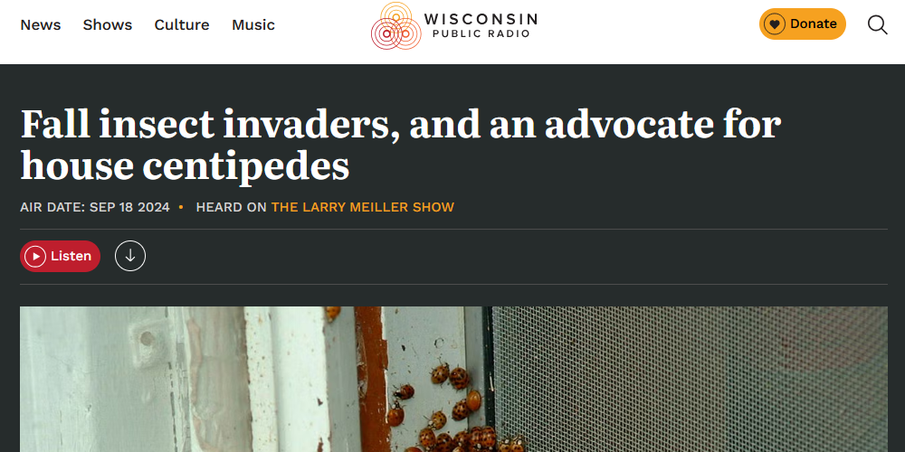 I was invited to be a guest on The Larry Meiller Show, a radio show on the Wisconsin Public Radio station. I talked about house centipedes and other arthropods you might find in the home.